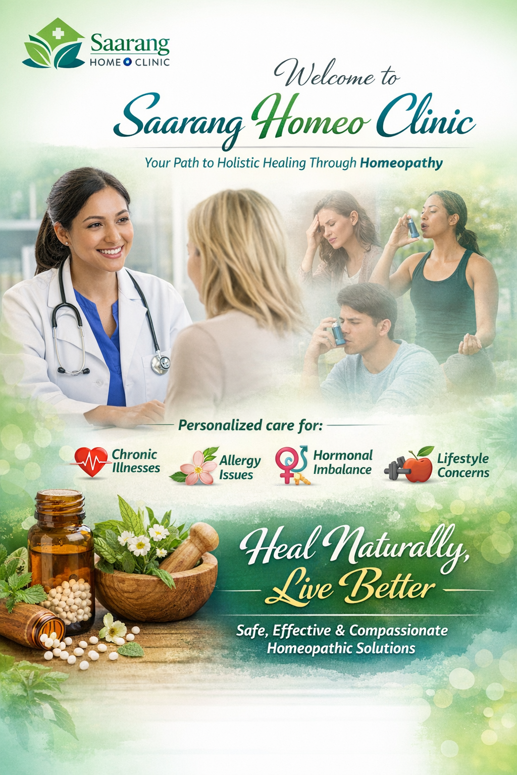 Welcome to Saarang Homeo Clinic, your trusted destination for holistic healing through Homeopathy. At Saarang, we focus on personalized treatment plans that address the root cause of your health concerns — not just symptoms. Whether you’re dealing with chronic illnesses, allergy issues, hormonal imbalance, or lifestyle-related concerns, our expert homeopaths guide you with compassion and care. Discover how natural, safe, and effective homeopathic solutions can transform your health and wellbeing.